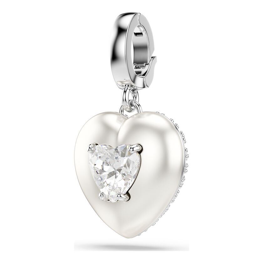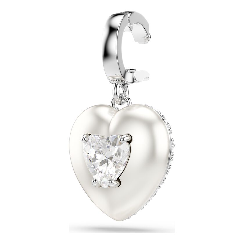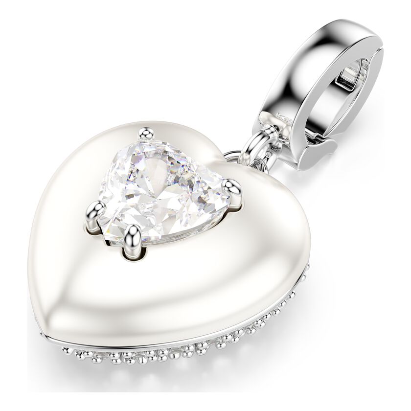 Idyllia charm, Mixed cuts, Pearl-colored coating, Heart, White, Rhodium plated