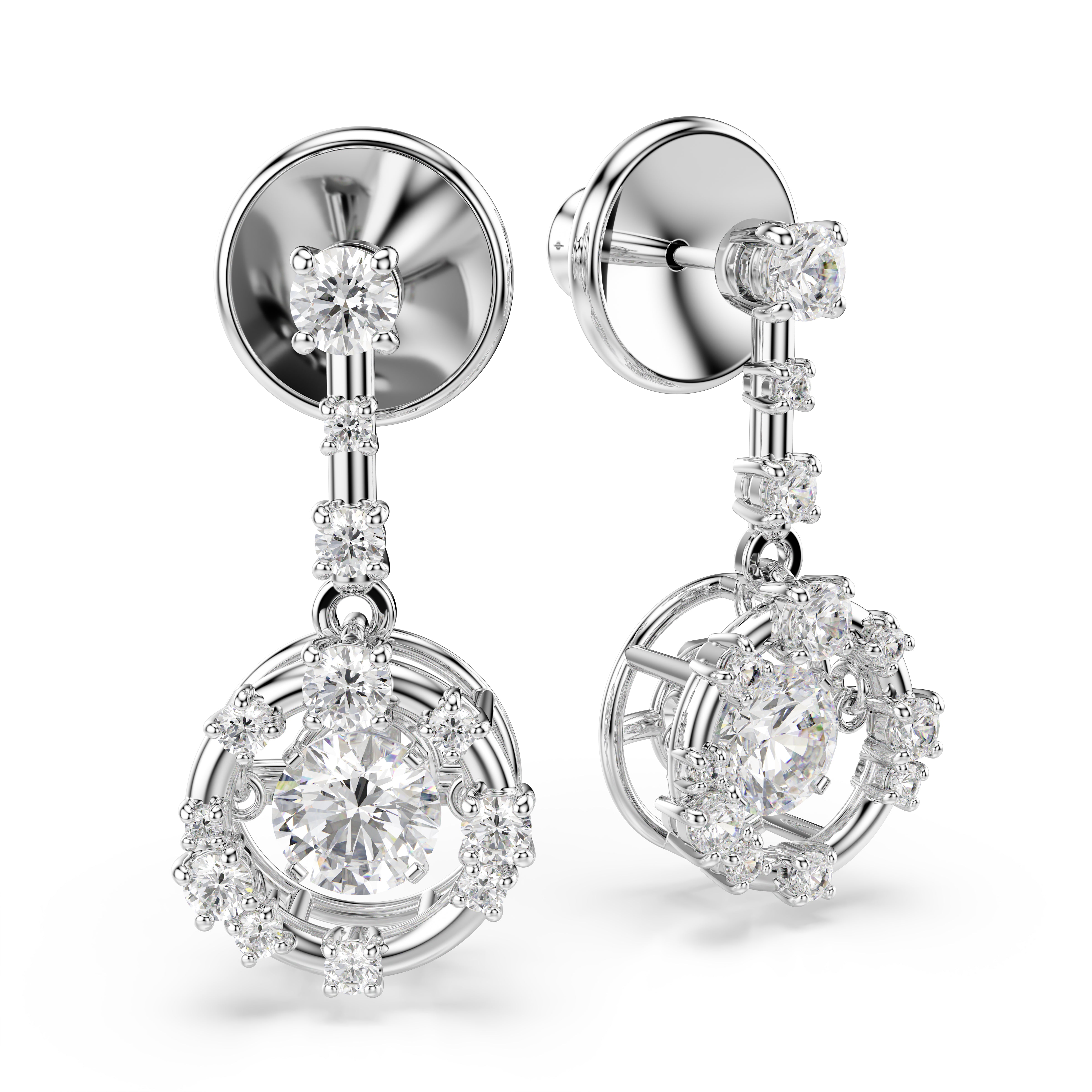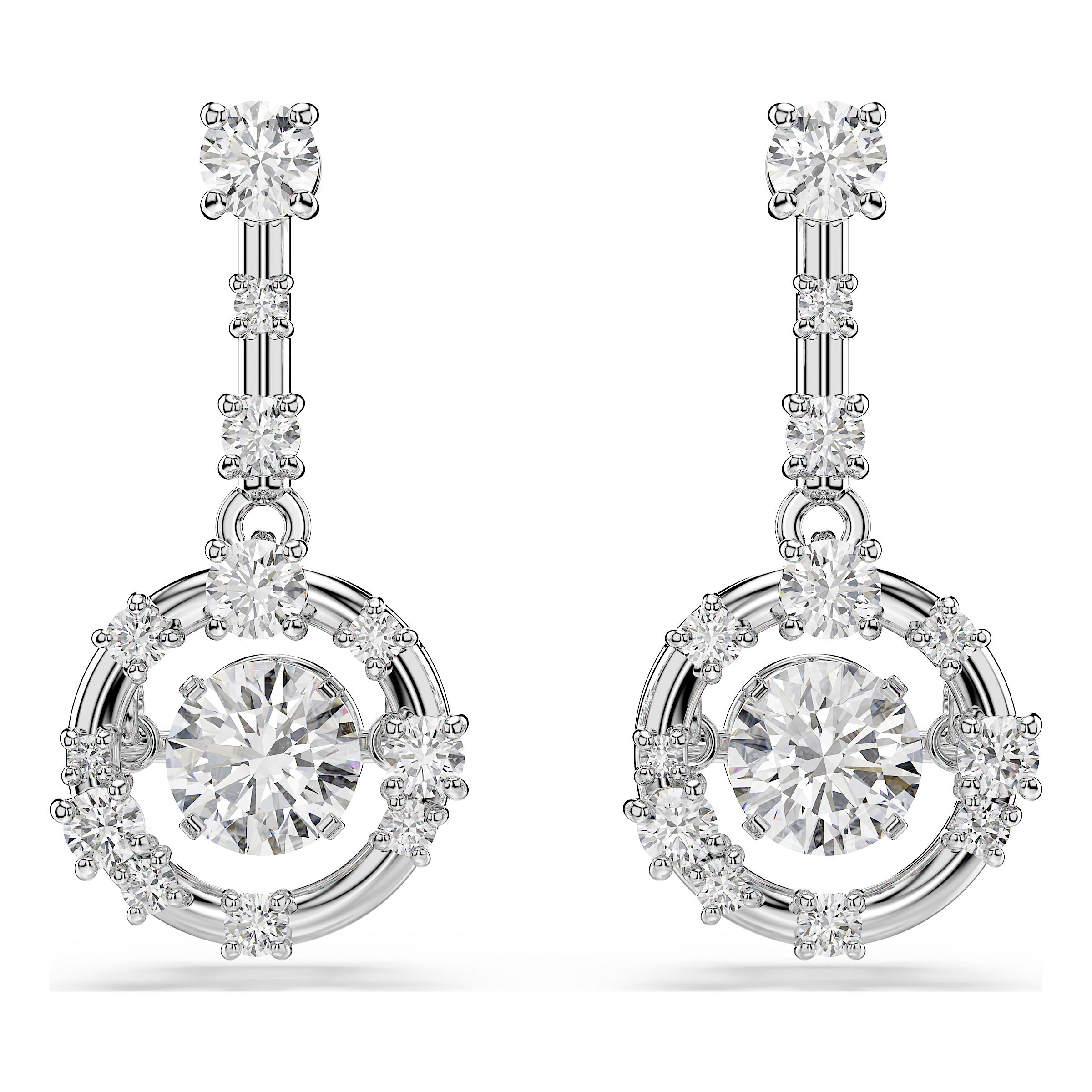 Crafted for maximum radiance, these star-inspired earrings will make any outfit shine bright. Each rhodium plated piece features a dancing stone at the center, which produces endless reflections, while smaller Swarovski Zirconia are positioned around the metallic frames and bars. Wear them with the matching bangle or pendant to launch your style into the cosmos.