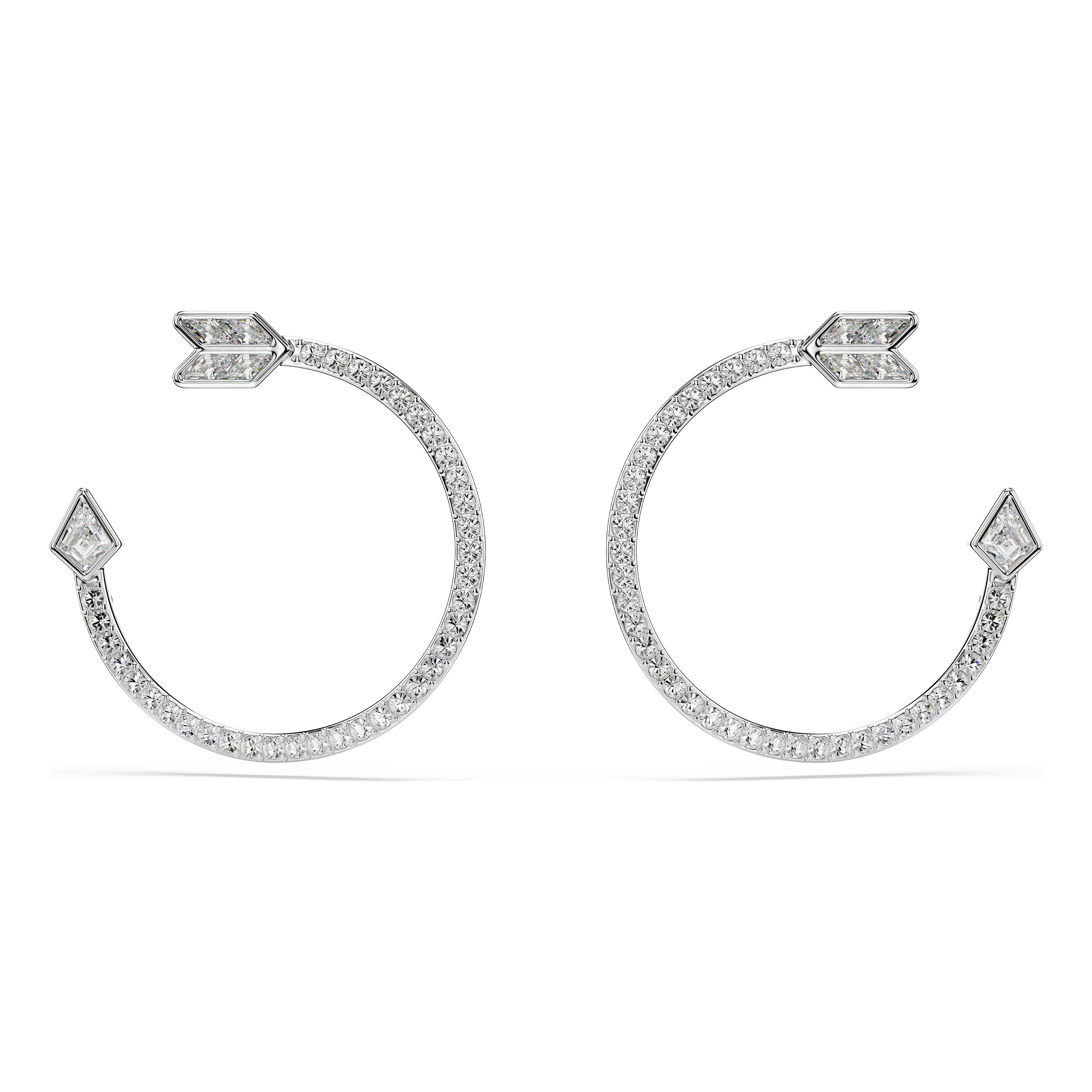 Transforming the classic hoop style into a pair of Cupid’s arrows, these Idyllia earrings combine sleek rhodium plating with a variety of clear crystal cuts. Wear them as a twist on romantic styling and match them with the other arrow-shaped jewelery from our Swarovski range.