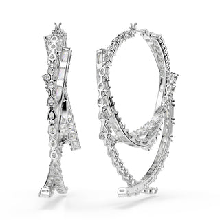 Matrix hoop earrings, Mixed cuts, Blue, Rhodium plated