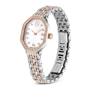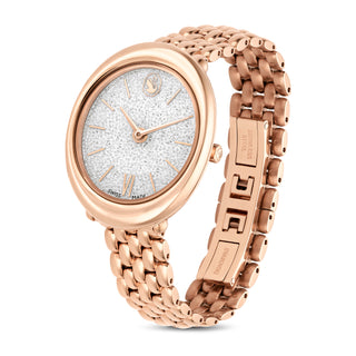 Crystalline Bangle watch Swiss Made, Metal bracelet, White, Rose gold-tone finish