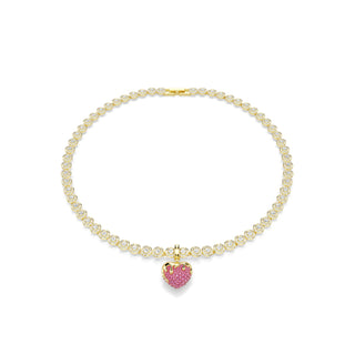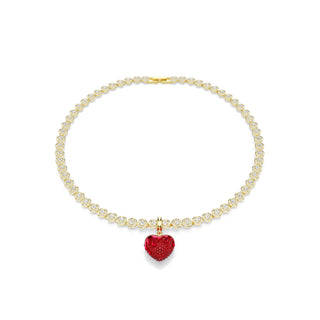 Idyllia charm, Round cut, Heart, Red, Gold-tone plated