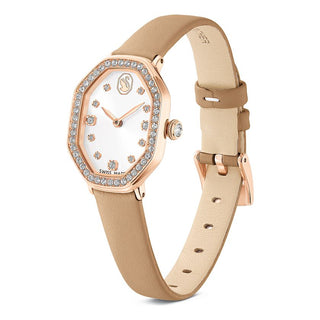 Idyllia Heart watch, Crystal bracelet, Pink, Gold-tone finish