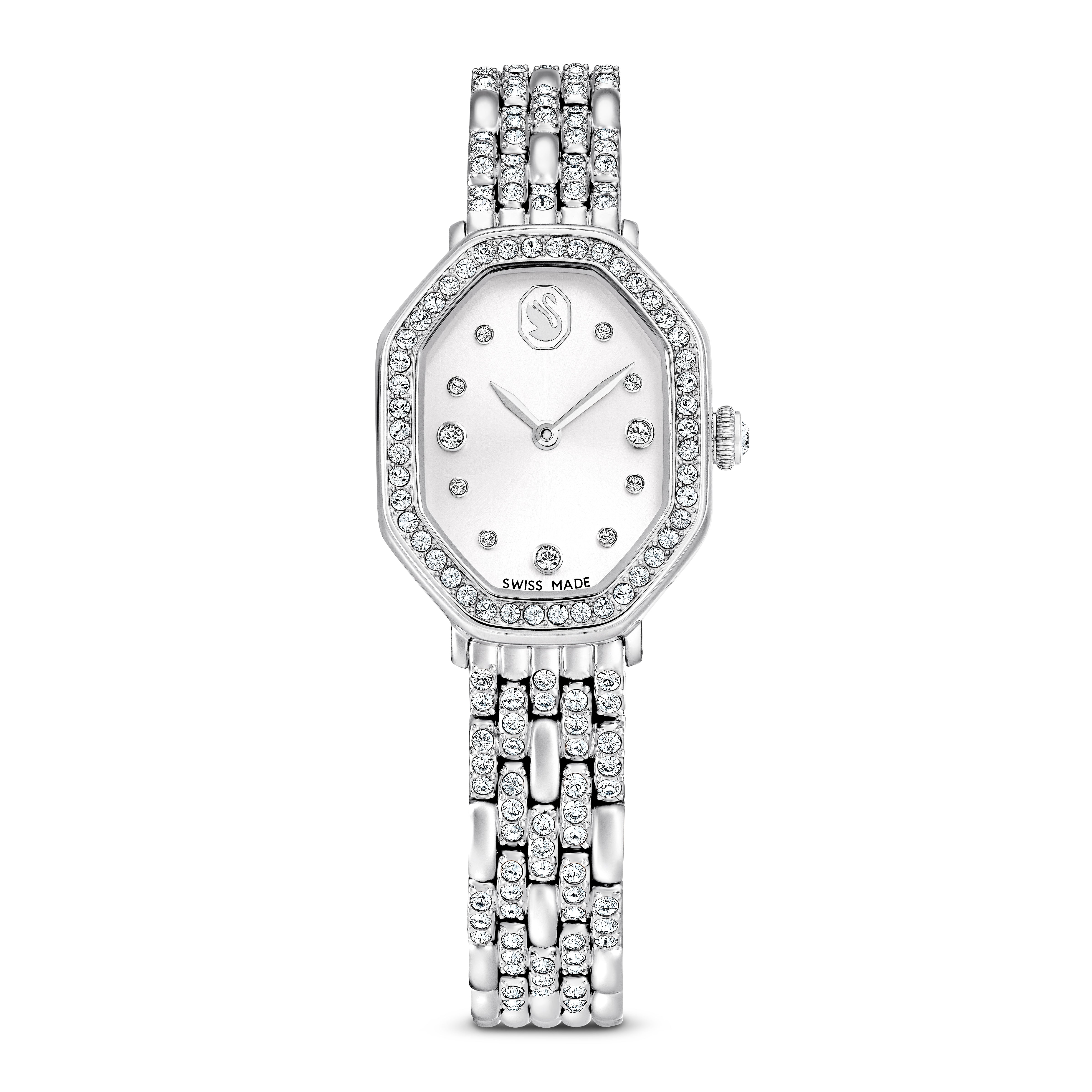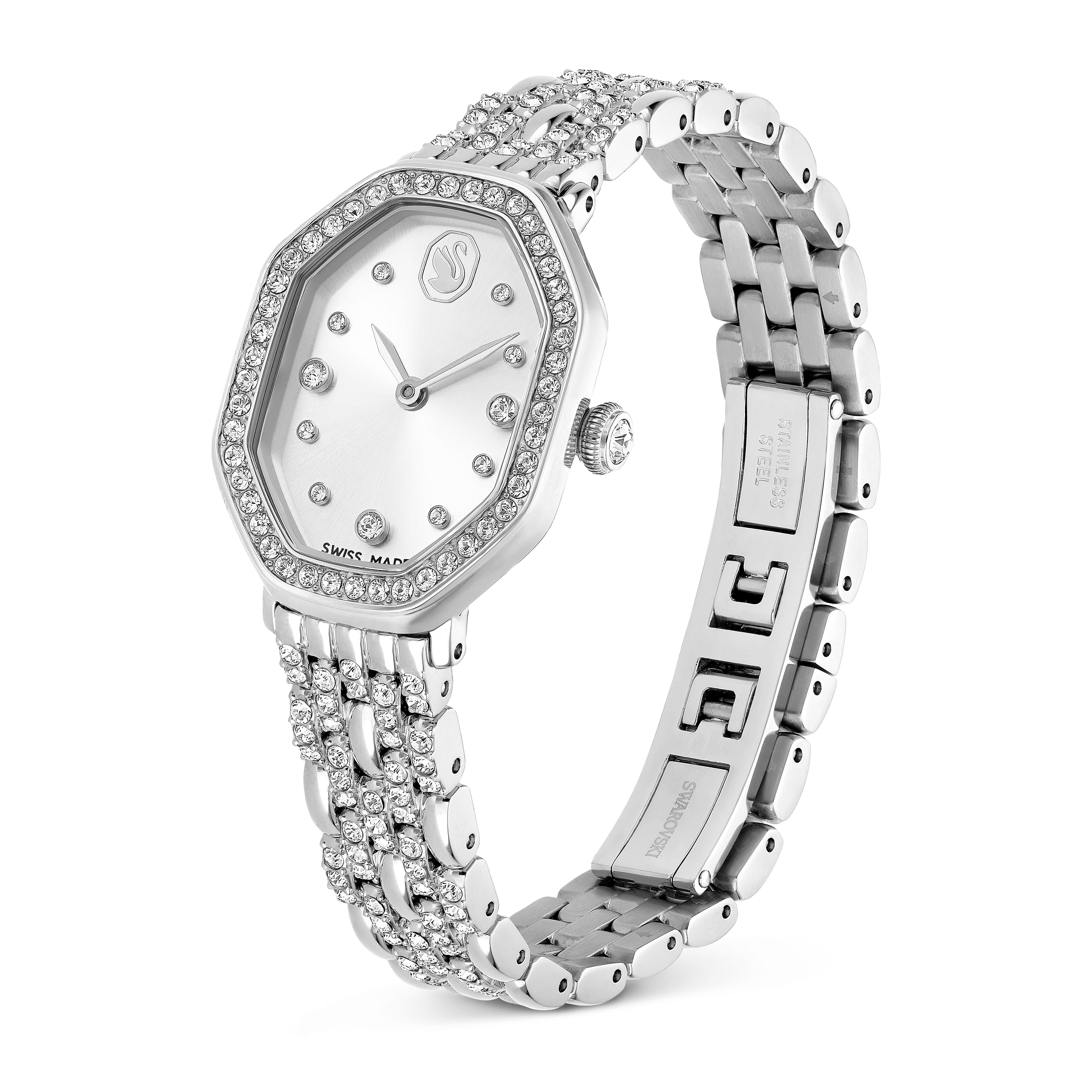 Inspired by the timeless elegance of the Dextera family, this 18 x 23 mm watch is uniquely crafted in Swarovski’s iconic octagon shape. Made in stainless steel, the design features a pavé bezel set with 46 crystals, and an additional crystal set within the crown. The sunray dial also includes delicate crystal indexes, along with slender hands and a swan logo at 12 o’clock. To complete this radiant creation, the five-link bracelet is adorned with 108 round-cut crystals, giving you endless shimmer at every hour. This Swiss Made watch is water resistant to 50 metres.
