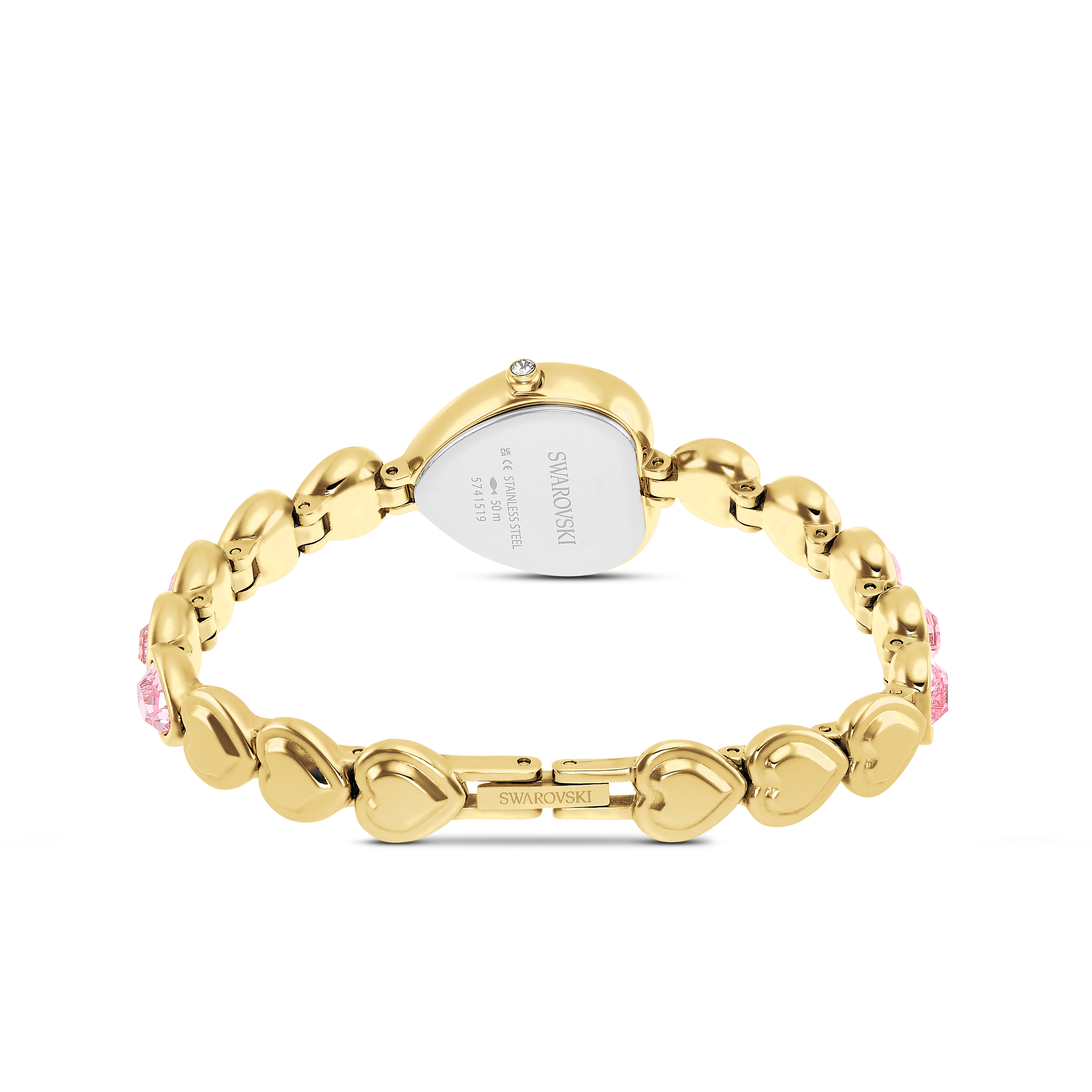 Idyllia Heart watch, Crystal bracelet, Pink, Gold-tone finish
