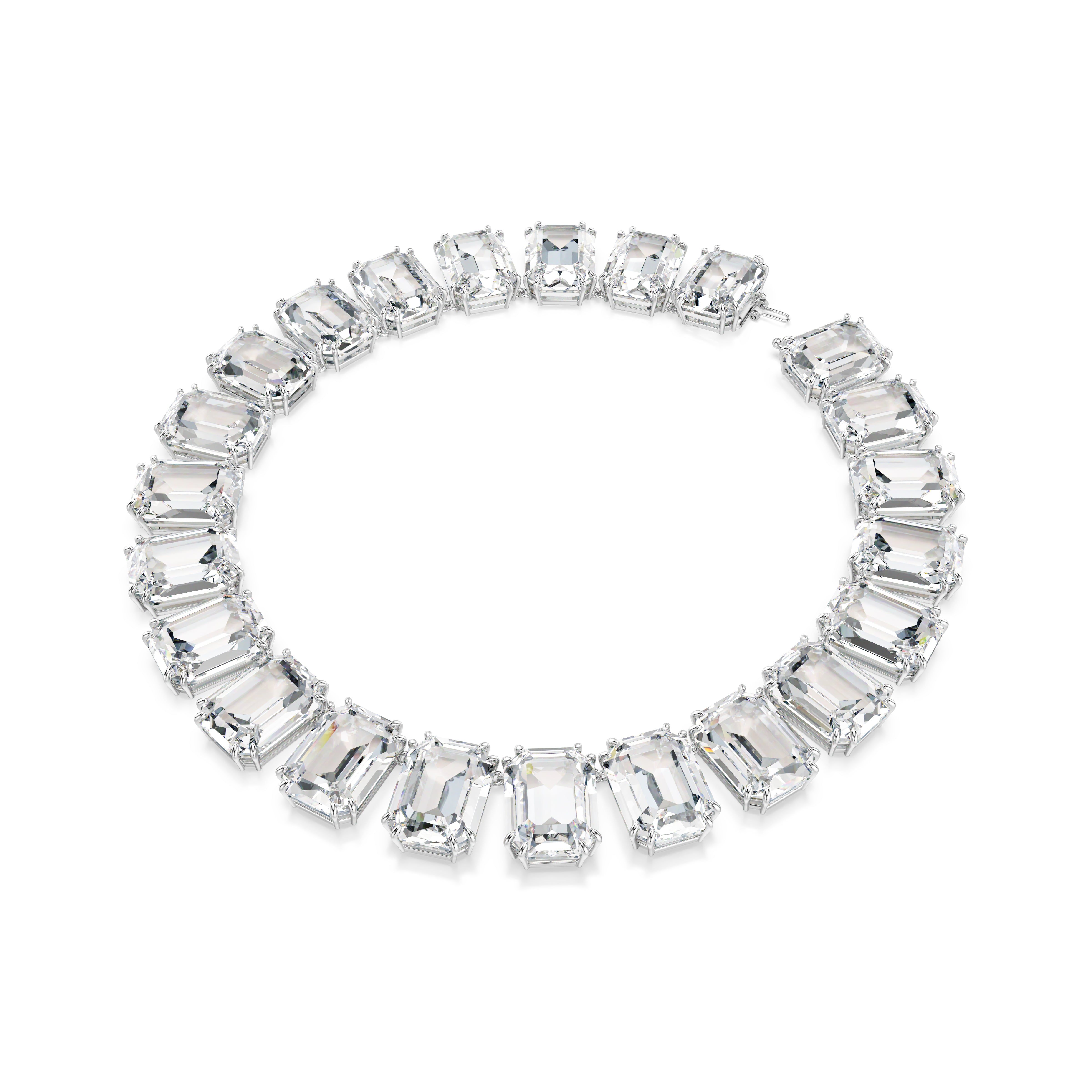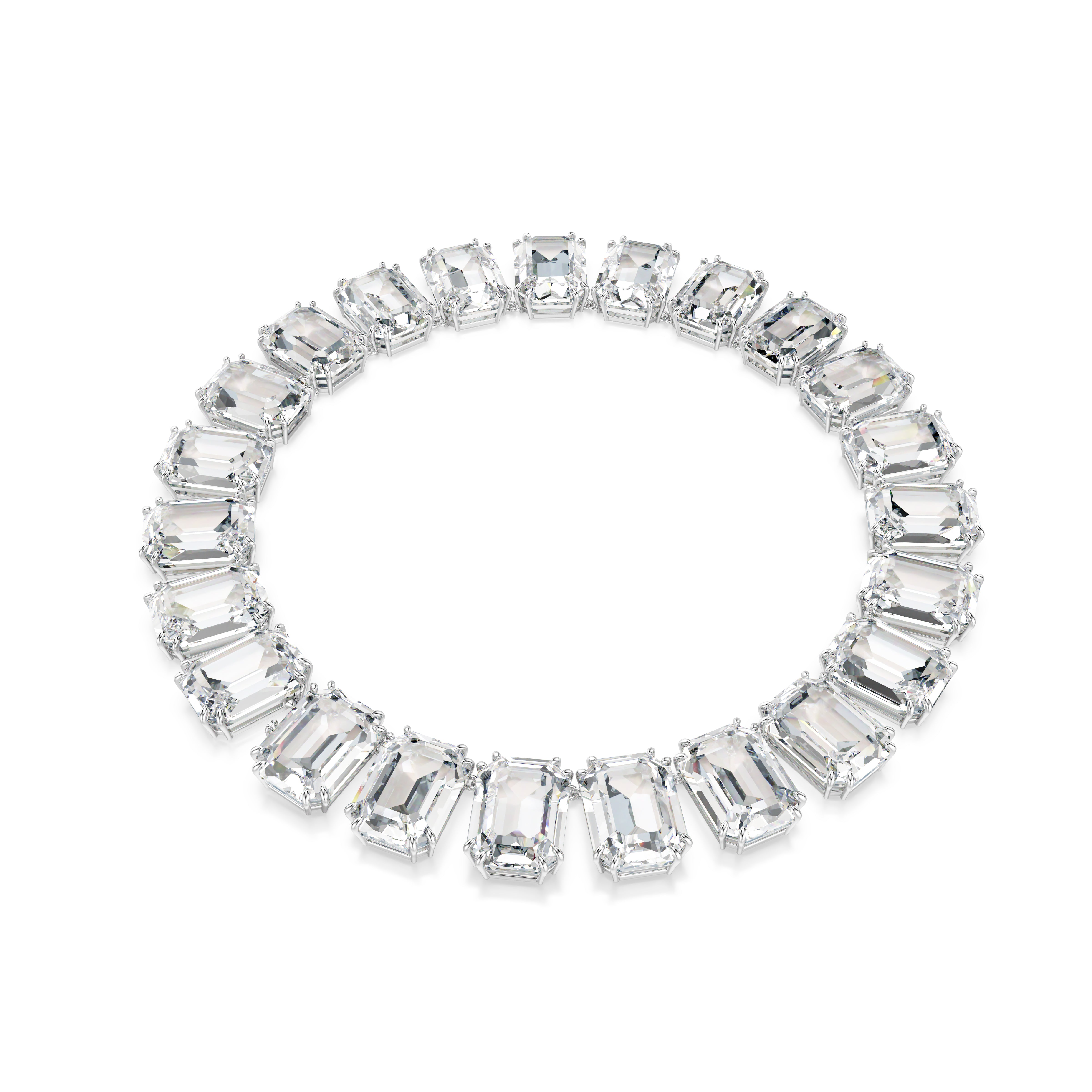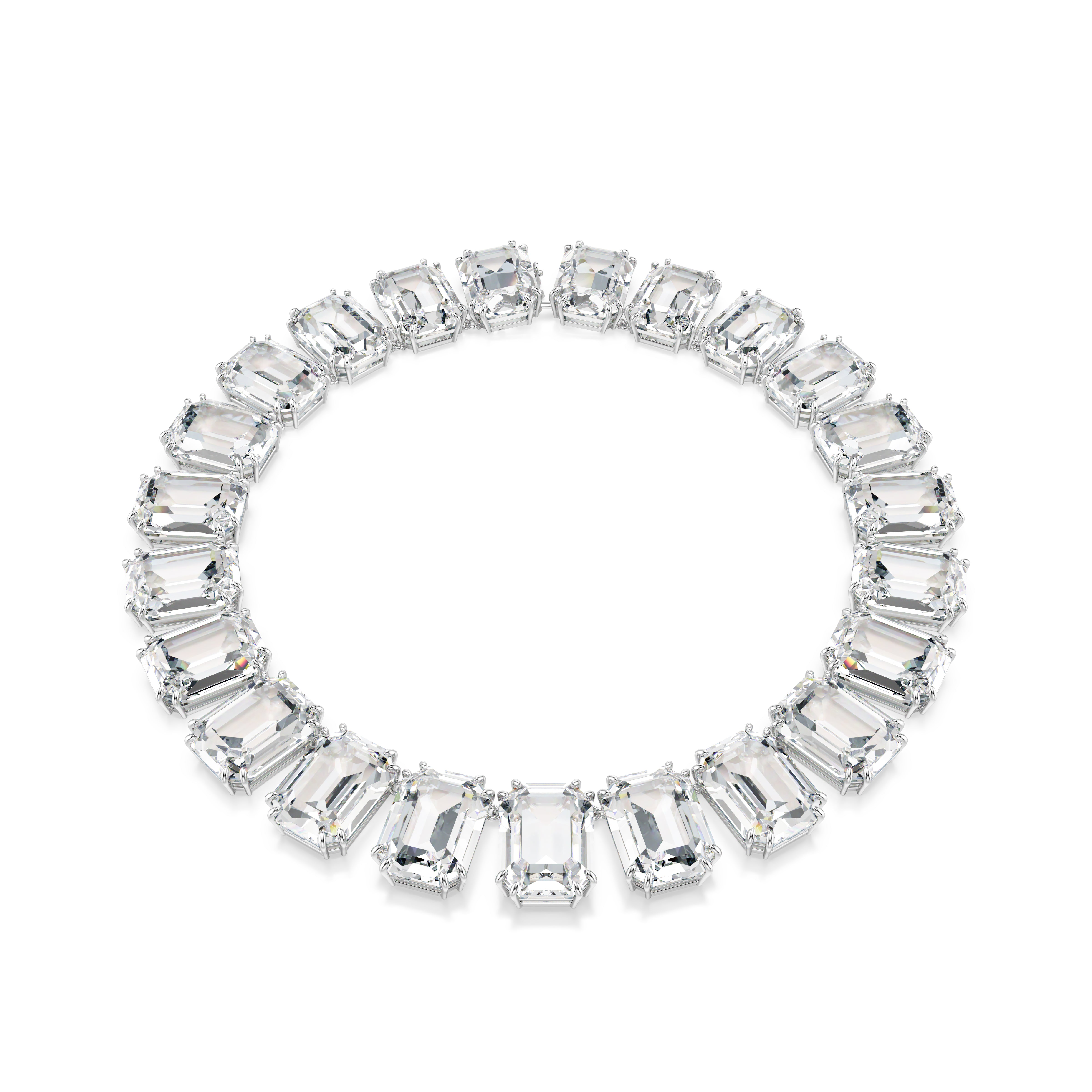 Discover your new wardrobe essential with this distinctive necklace, designed with a row of clear octagon-cut crystals, cradled in rhodium plated prong settings. Finished with a hidden closure for a seamless effect, your everyday style will take on a new life once you add this necklace as a luminous finishing touch.
