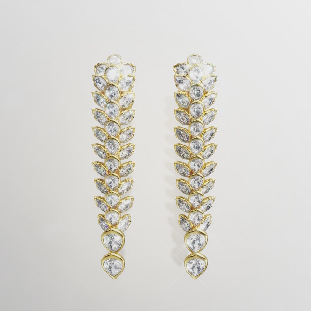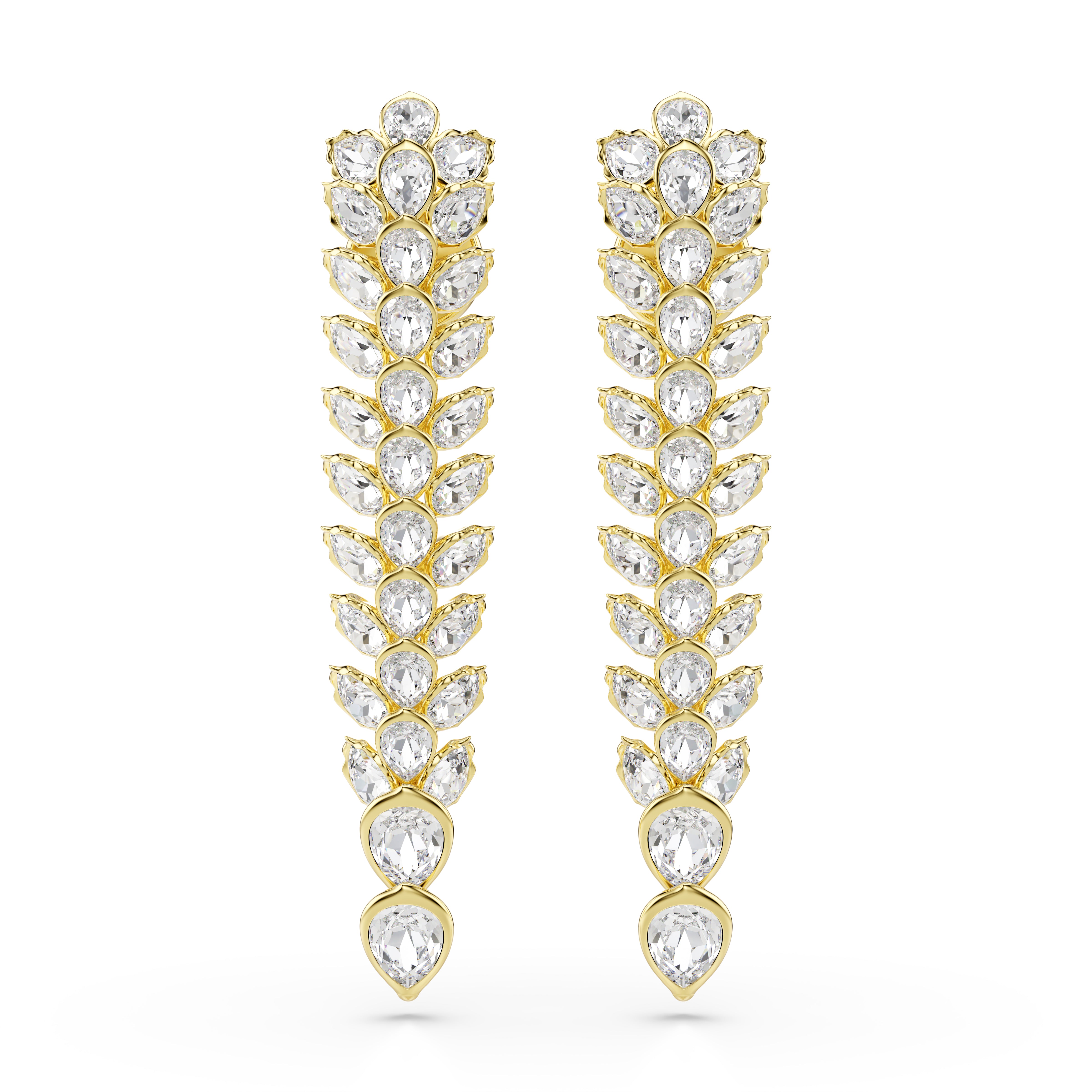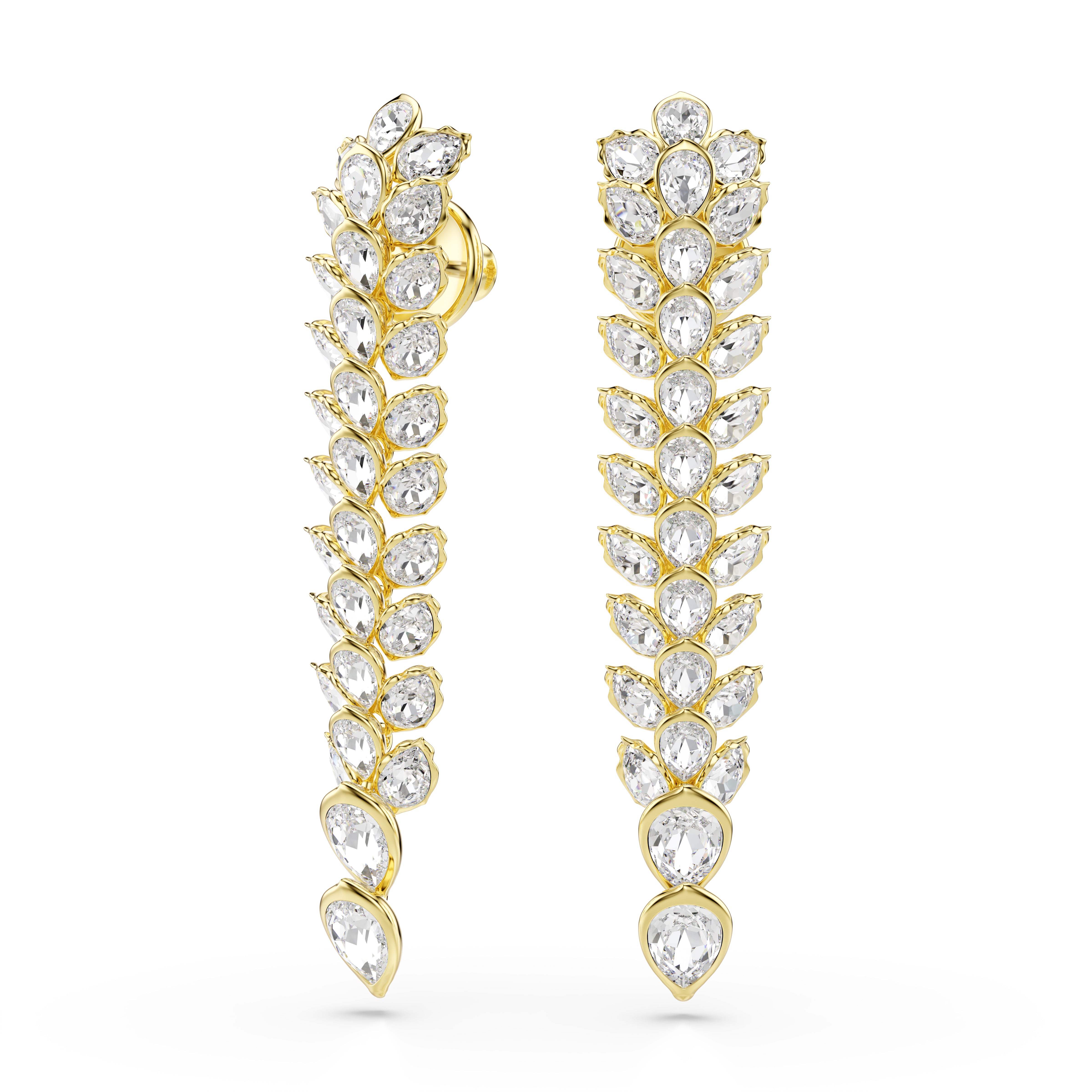 Set your style alight with the full luminosity of these long Idyllia earrings. Each gold-tone plated piece follows the expressive pattern of foliage, with a cascading drop of crystals in bezel settings. Adding a stunning effect to your most glamorous occasions, these earrings are the ultimate example of Swarovski savoir-faire and combine perfectly with a matching choker or bracelet.