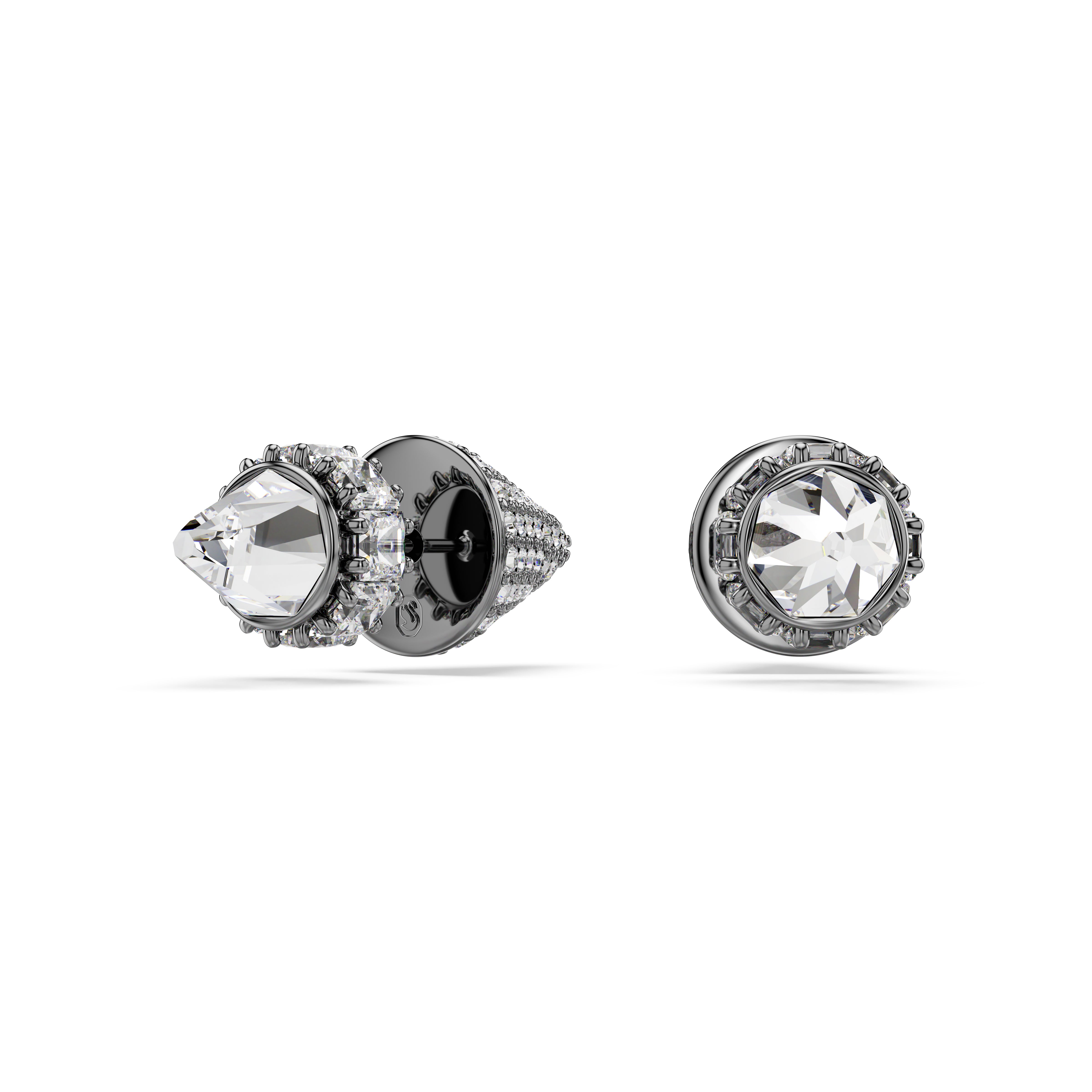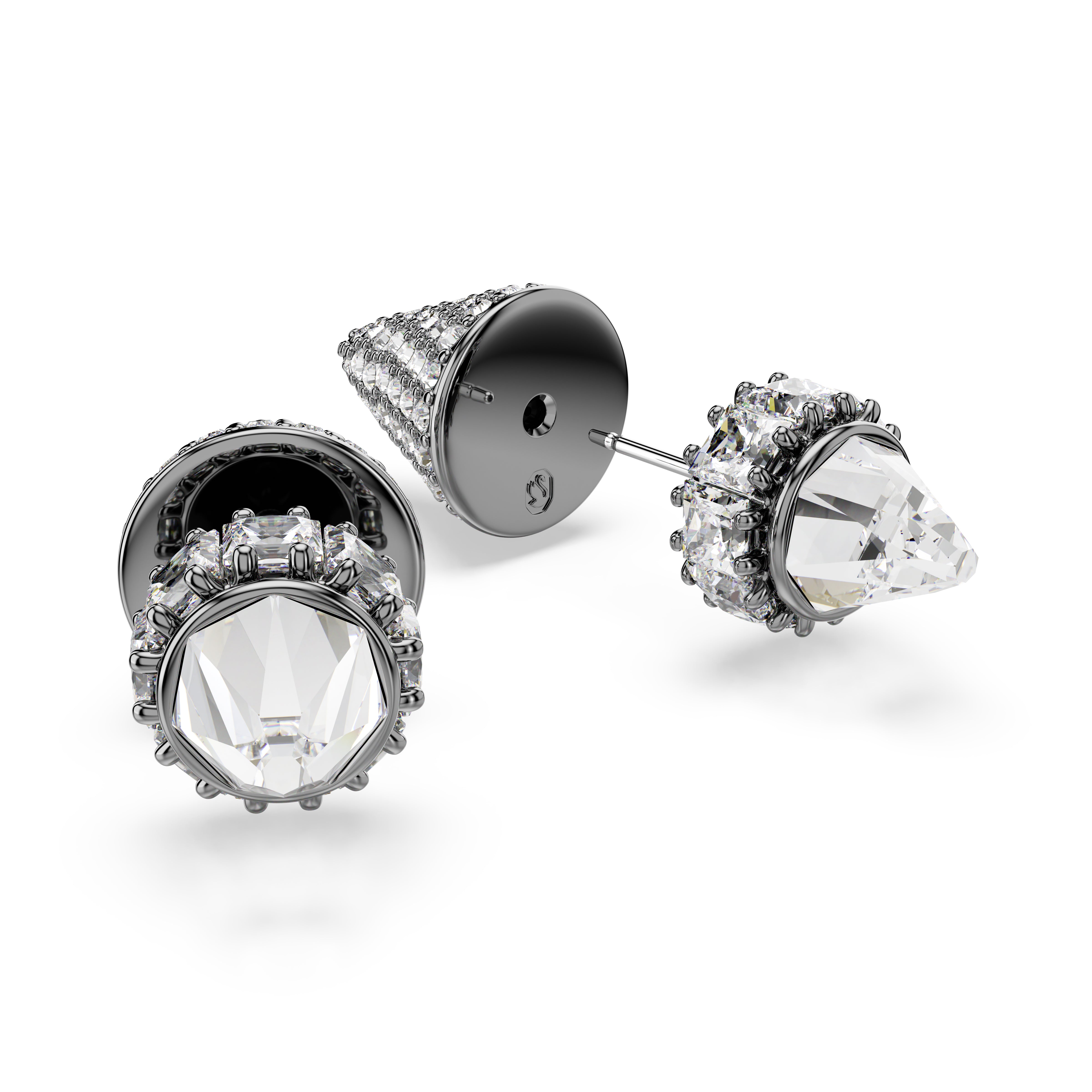Add an unexpected touch to your style with these bold and dramatic earrings. Each piece is ruthenium plated and features two captivating sides. This includes a spike-shaped Swarovski Zirconia at the front, and another spike-shaped element at the back, which is adorned in shimmering round-cut pavé. Combine with a matching ring or bangle to heighten the impact.