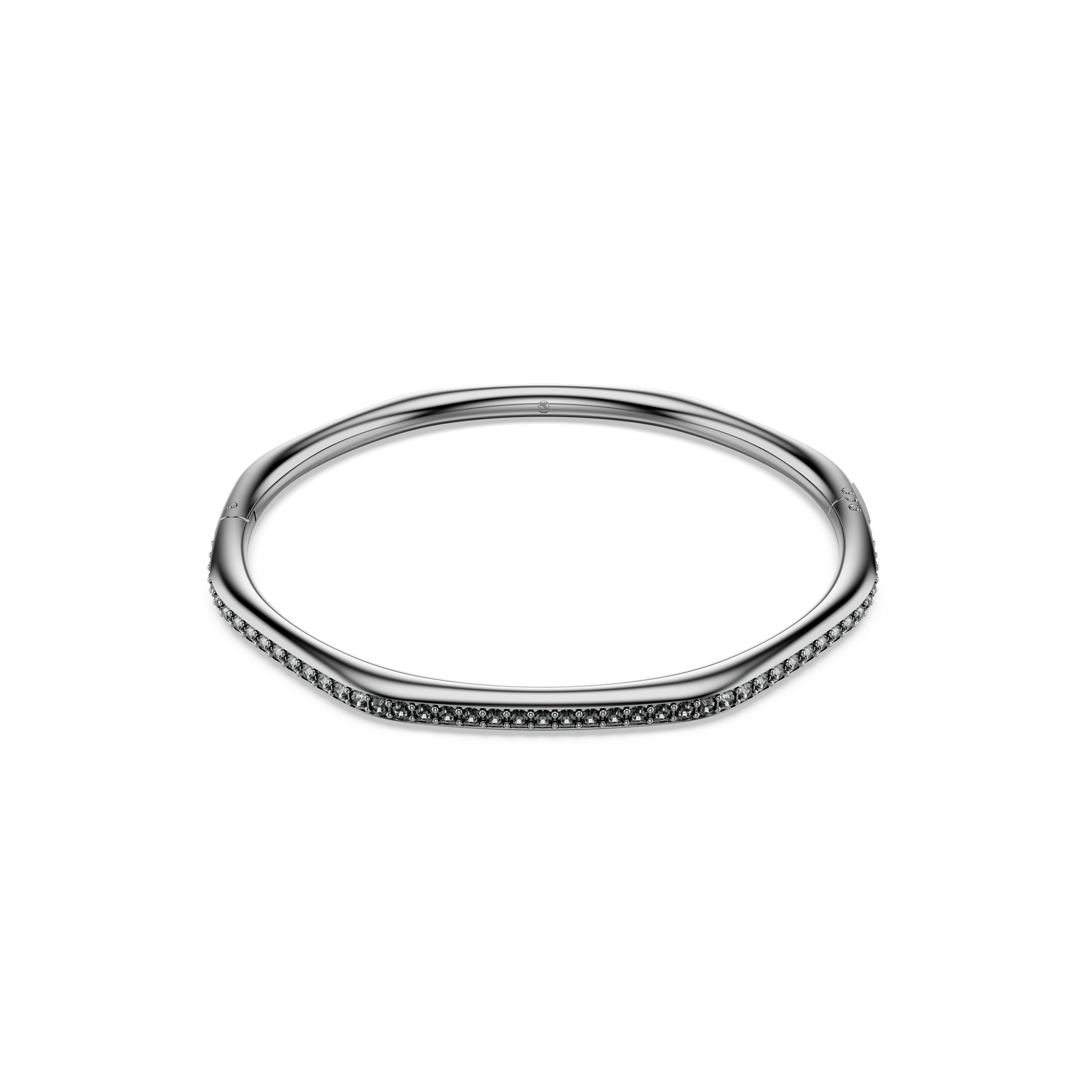 With its deep metallic tones, this Dextera bangle makes a chic statement. The slender octagonal design is ruthenium plated and accented with a row of black crystals in a refined prong setting. Style yours solo or with a matching pendant and signet ring to coordinate the sleek look.