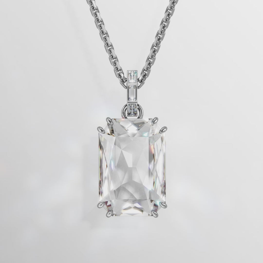 Millenia pendant, Octagon cut, White, Rhodium plated