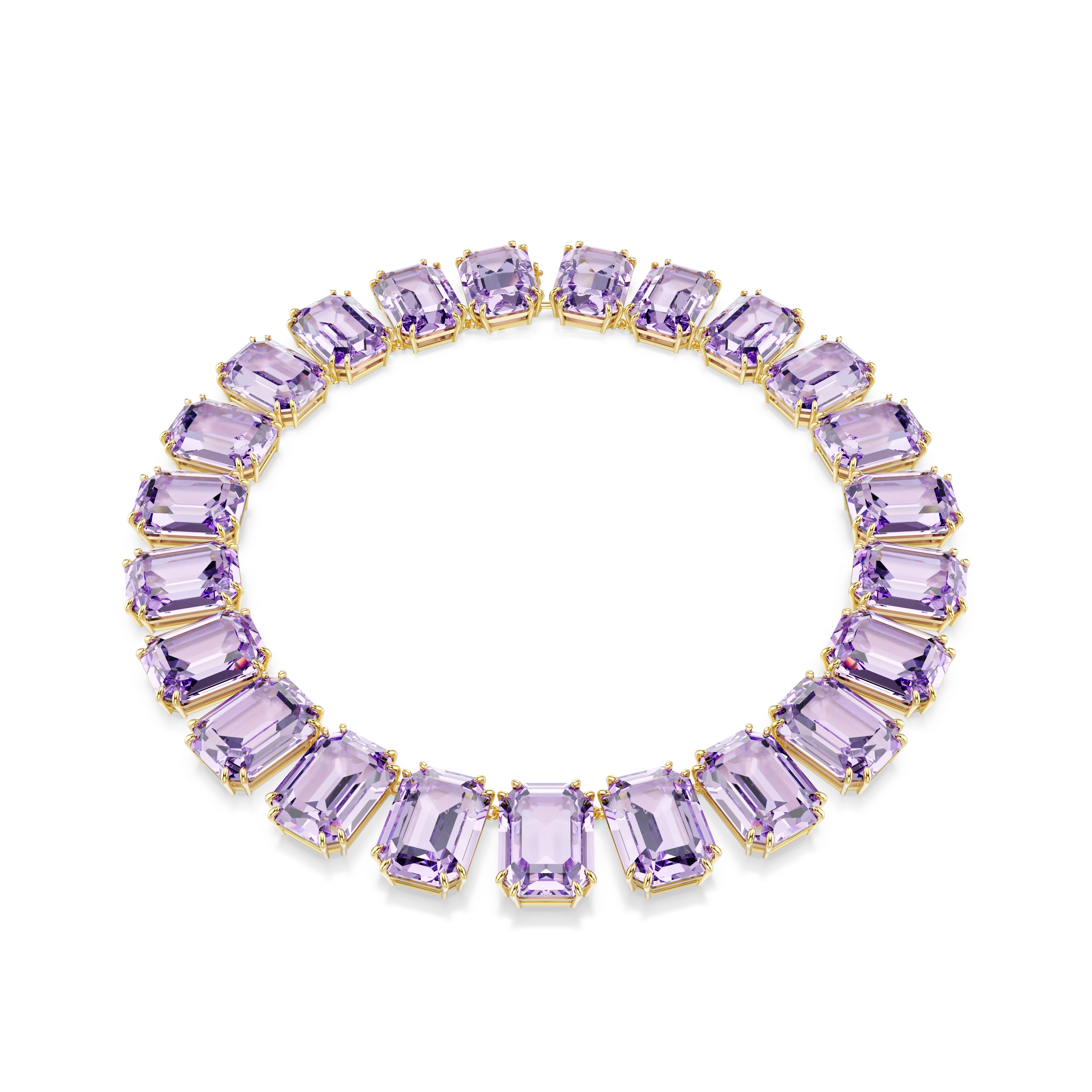 Discover your new wardrobe essential with this distinctive necklace, designed with a row of purple octagon-cut crystals, cradled in gold-tone plated prong settings. Finished with a hidden closure for a seamless effect, your everyday style will take on a new life once you add this necklace as a vivid finishing touch.