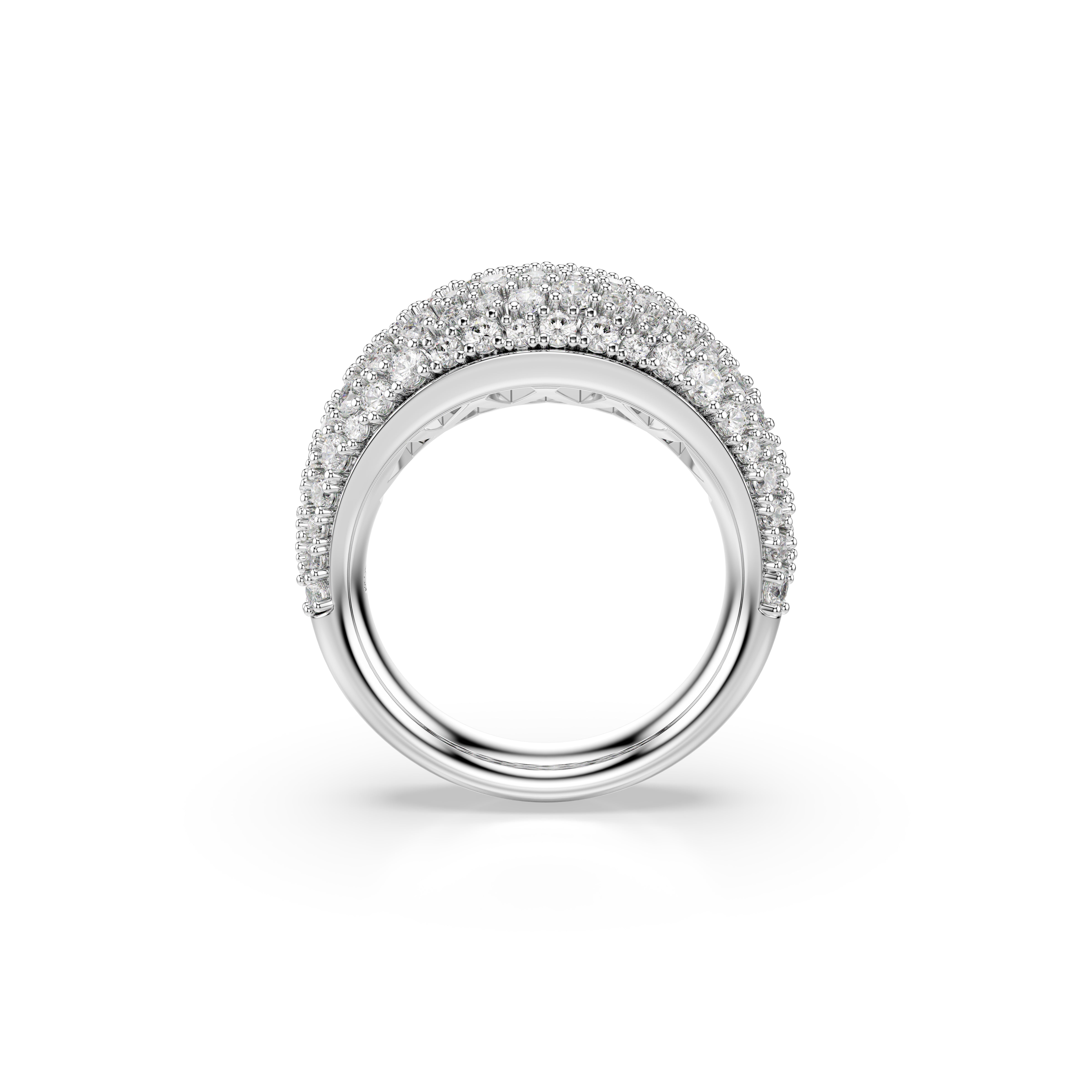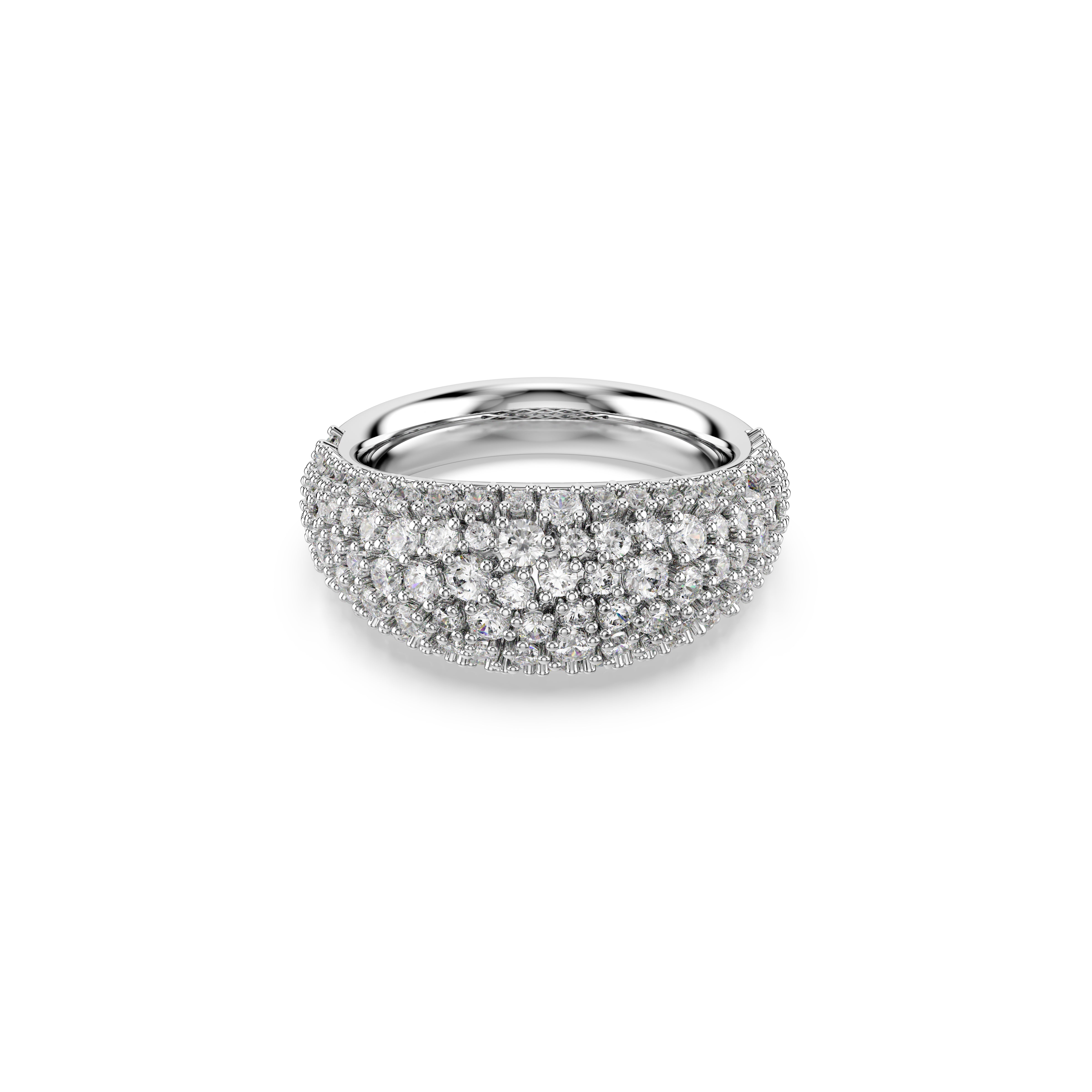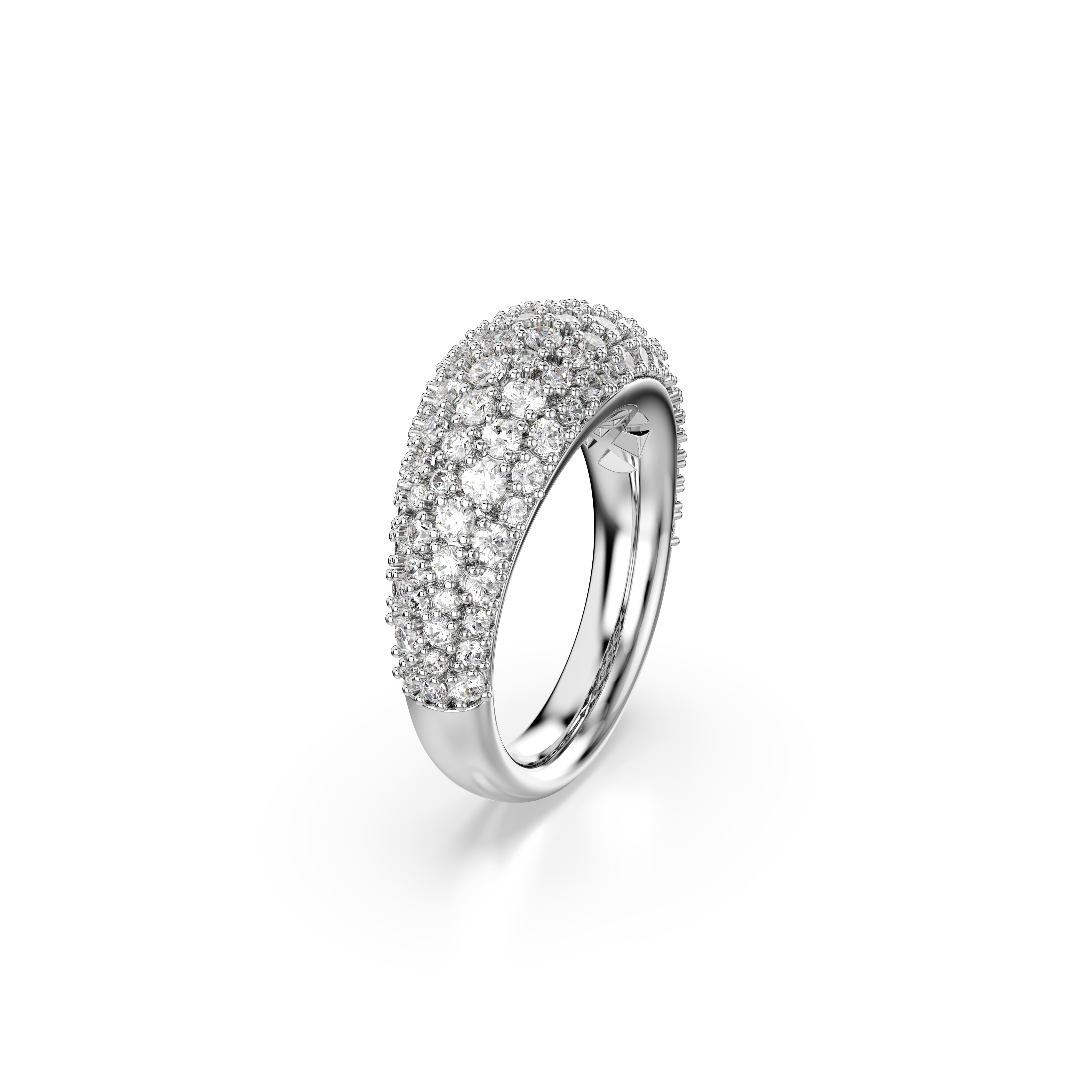 Designed for maximum impact, this domed ring is crafted in rhodium plating and features a stunning decoration of clear Swarovski Zirconia, set in place using the chatonnage technique. Ideal for moments when elegance and wonder is called for.