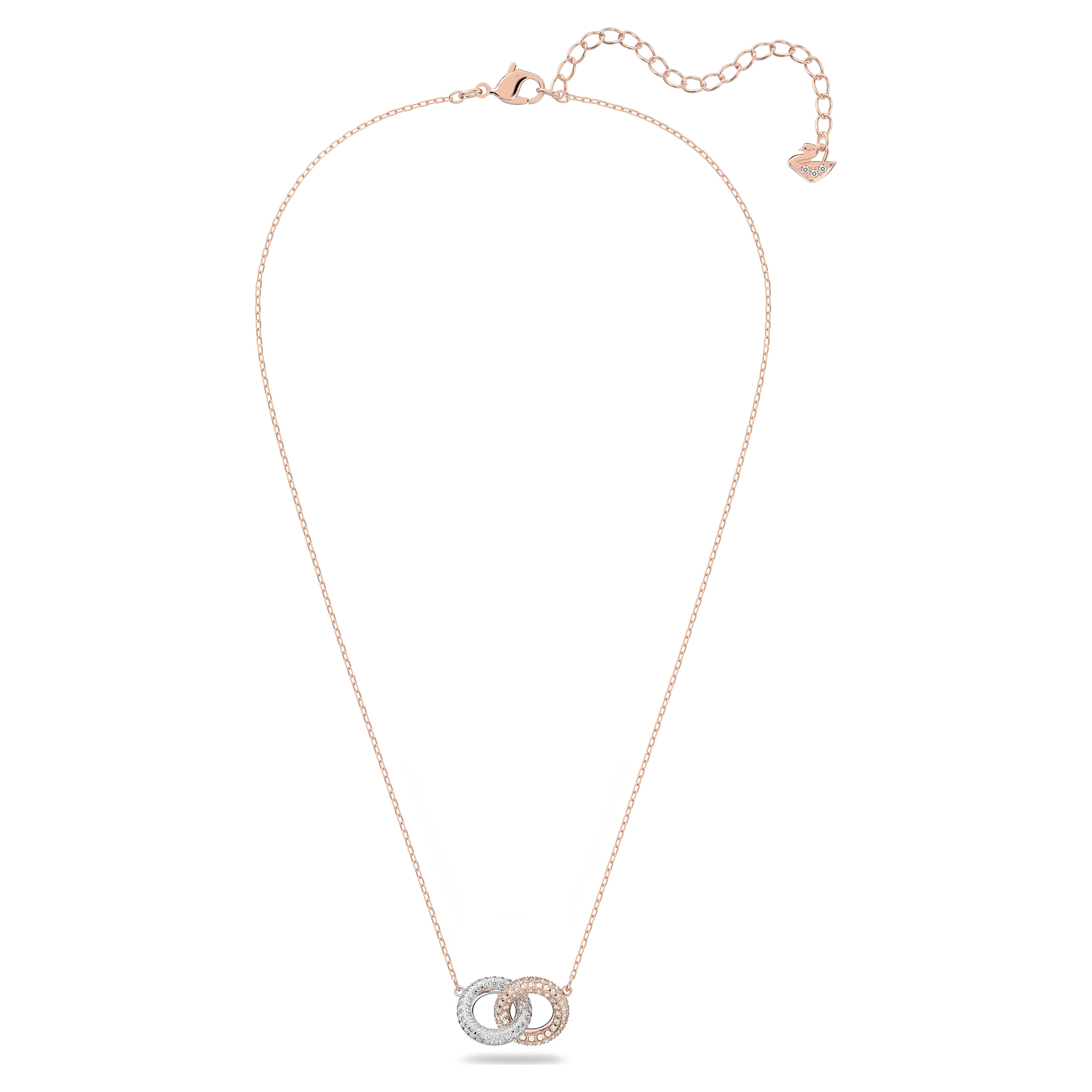 Dominated by interlocking circular motifs, this necklace will bring a touch of luxurious finish to any outfit. Crafted in rose gold-plated metal, it shines in contrasting shades of pavé in gold-toned and clear crystal. A subtle accessory to move your look seamlessly from day to night. Perfect for bohemian layering or easily combined with other pieces from the Dextera family for a more classic aesthetic.