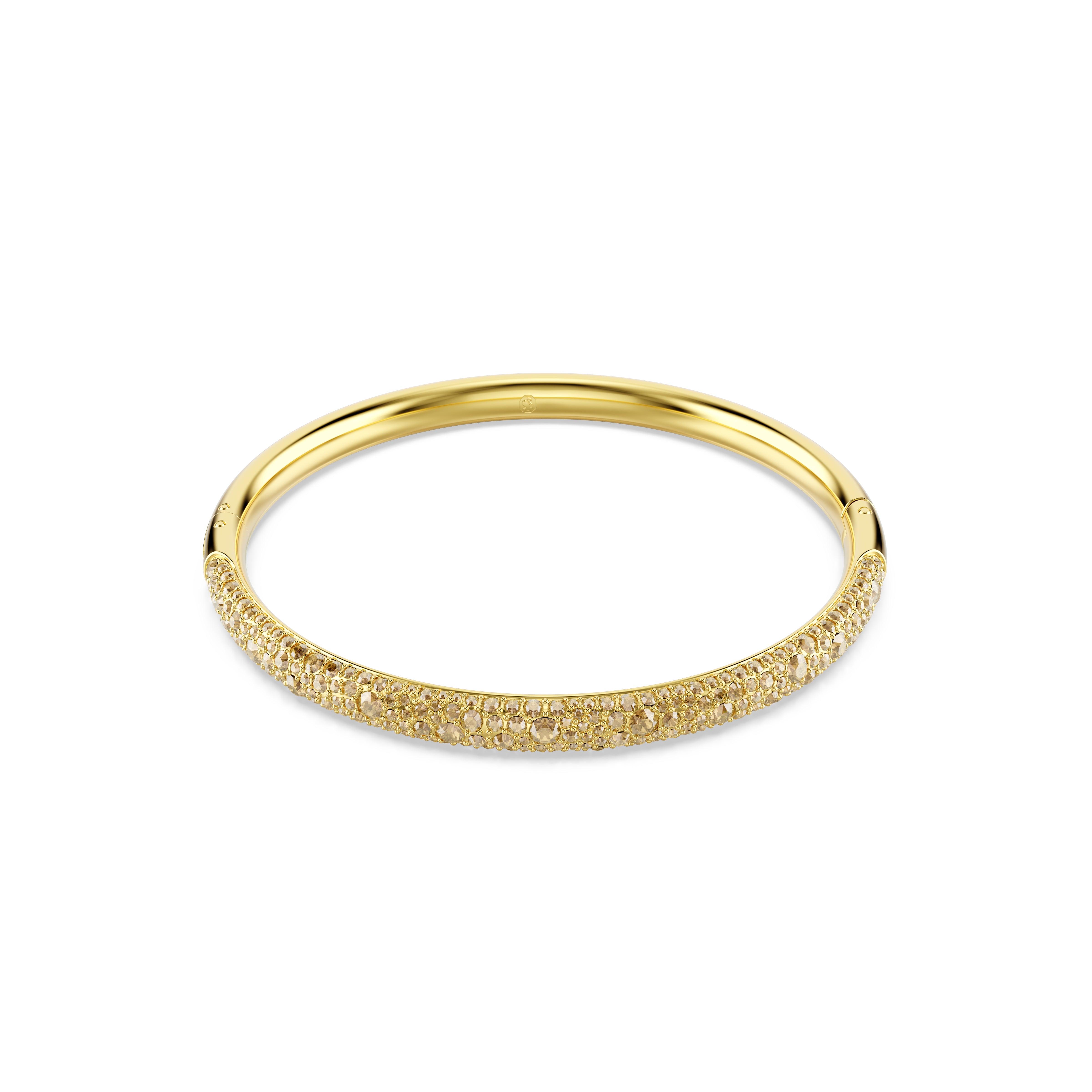 This dazzling Sublima bangle will infuse your style with stardust. The gold-tone plated band wraps gracefully around the wrist and features a pavé of gold-tone round crystals in different sizes across the top section. A luxurious touch of refinement for your everyday looks.