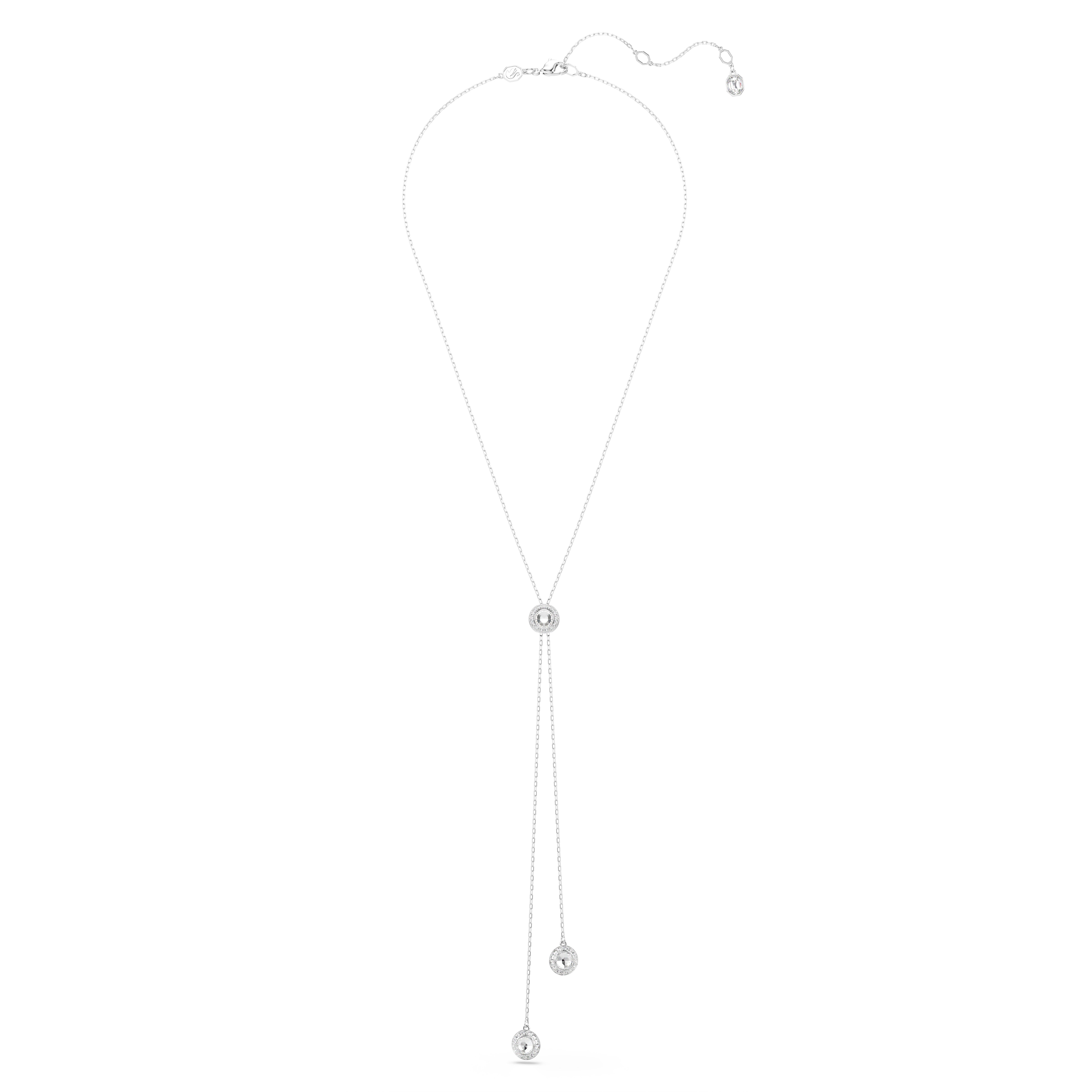 Embrace the versatility of this elegant Y-shape pendant. The rhodium plated chain features a sliding mechanism for an easily adjustable fit and is adorned with three double-sided motifs. Simply reverse the jewelry to showcase a different display of round-cut crystals. Mix and match with other Una Angelic pieces for a look of ultimate radiance.