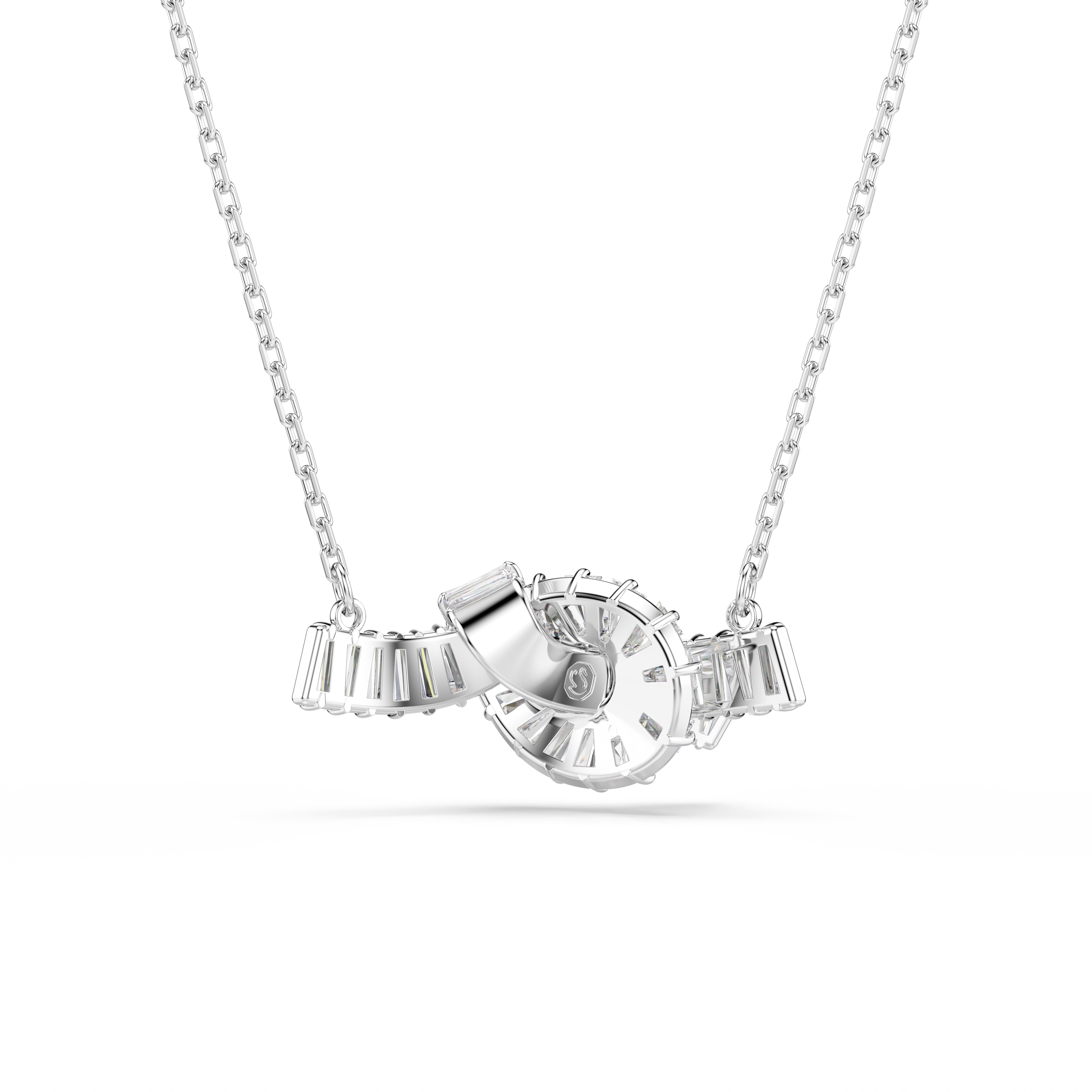 This elegant Swarovski pendant is tied in a knot to signify eternal connection. Suspended from a delicate chain, the ribbon-inspired motif is rhodium plated and features a sophisticated adornment of baguette-cut Swarovski Zirconia, each placed in a prong setting. It’s a sophisticated piece of everyday jewelry that matches beautifully with other Matrix creations.